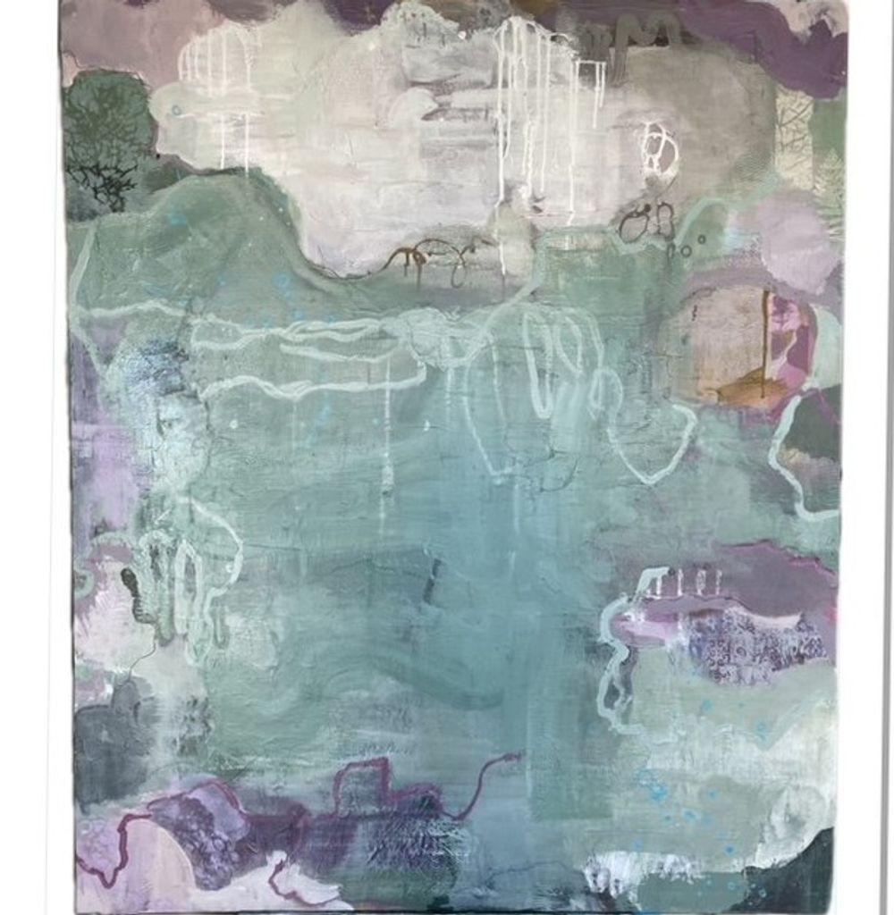 Rykande färsk målning som står på tork på staffliet. Titel: Härvaro Format: 100 x 120 cm Akryl på canvasdukBrand new painting drying on the easel. Titel: Presence Format: 100 x 120 cm Acrylic on canvas